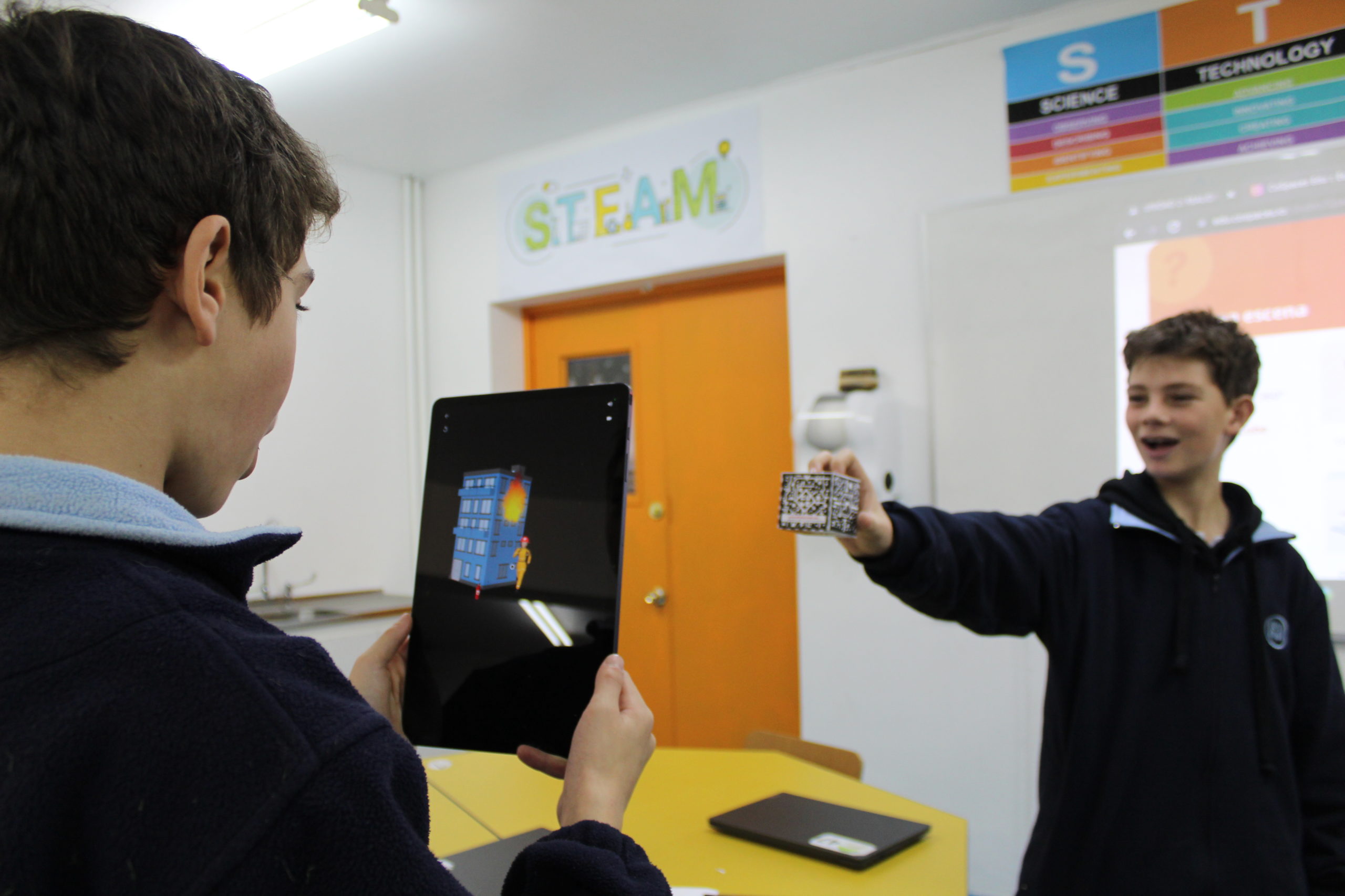 Mientras se escucha el zumbido de la impresora 3D dando forma a objetos, un animado grupo de estudiantes se sumerge en una conversación sobre la mejor manera de plasmar sus ideas en el software de diseño. En medio de este bullicio creativo, la morá Alejandra camina entre las mesas, respondiendo las preguntas que dos estudiantes tienen sobre una actividad de realidad aumentada. Mientras tanto, la morá Fabiola acomoda unas placas de cartón y se concentra en su labor con la cortadora láser. El Maker Space del Hebreo se convierte así en una cautivadora sinfonía de sonidos y movimientos.