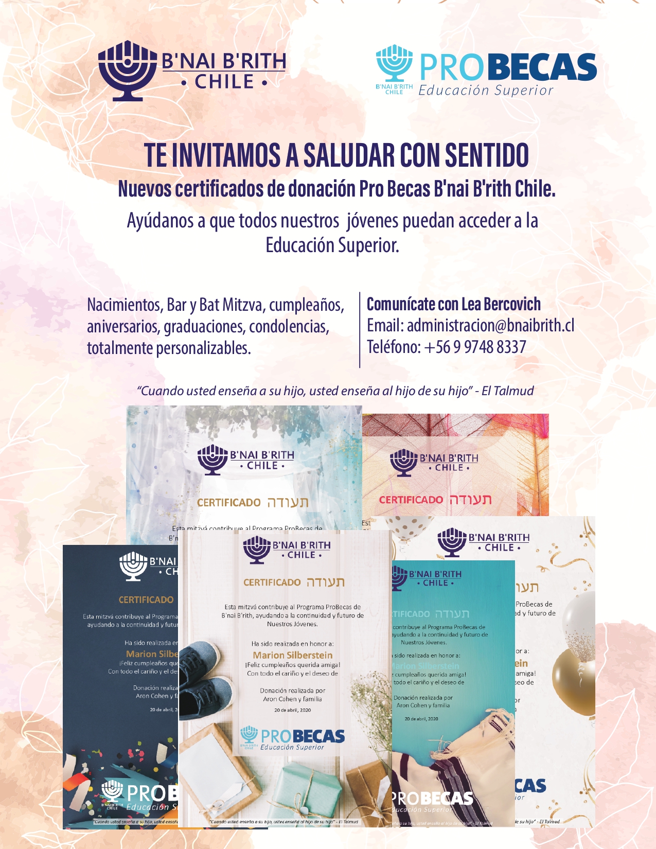 Te invitamos a conocer nuestros nuevos diseños en: www.bnaibrith.cl/certificados-de-beca/