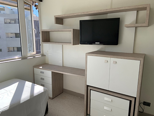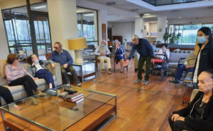 Pasó el tiempo, mi hija volvió a Italia y nuevamente me visitó a principios del 2020. A los dos días de su llegada me dio un accidente cerebro vascular por el que fui a parar a la Clínica Alemana. Mi hija tenía que volverse a Italia y tuvo que tomar una decisión rápida: llevarme a alguna parte donde me pudieran cuidar al salir de la clínica. Una gran amiga mía, que me apoyaba en todo, tenía una kinesióloga particular que la atendía a ella y que trabajaba en una residencia para adultos mayores. Coincidió que justo era la que había visitado anteriormente con Paula y que me había gustado… así, con la ayuda de la kinesióloga de mi amiga, quien hizo de puente, llegué a vivir en Beit Israel. No fue fácil tener que dejar todo de un día para otro, además justo se desató esta pandemia que nos aisló del mundo exterior. Mi hija ya tenía todo vendido, hasta el departamento y no se podía ir porque los vuelos no salían y tampoco me podía venir a visitar ya que las residencias de adultos mayores se cerraron por orden de la Serermi debido a la rápida propagación del virus, que atacaba principalmente a los adultos mayores.