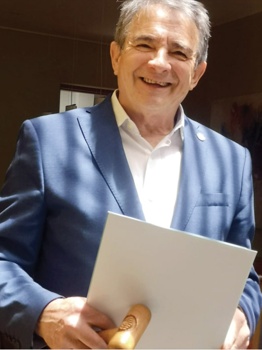 Miembro de la hermandad desde 1985, en la actualidad es miembro de la filial Shalom, espacio fraternal que comparte junto a su esposa, Viviana Barta.