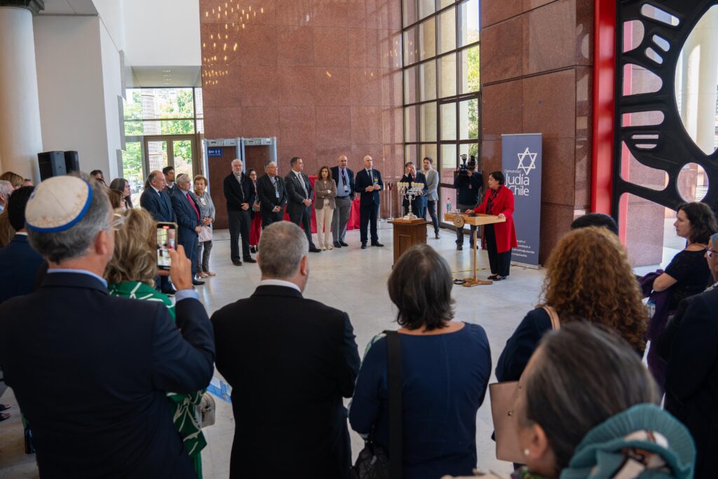 Durante la ceremonia, Ariela Agosin, presidenta de la Comunidad Judía de Chile, destacó en su discurso que “Janucá es precisamente la celebración del milagro, de la valentía y la fe inquebrantable de quienes lucharon por preservar su identidad, su cultura y sus valores a pesar de las dificultades”. Sus palabras resonaron como un llamado a la reflexión y al reconocimiento de la importancia de mantener vivas nuestras tradiciones y principios.