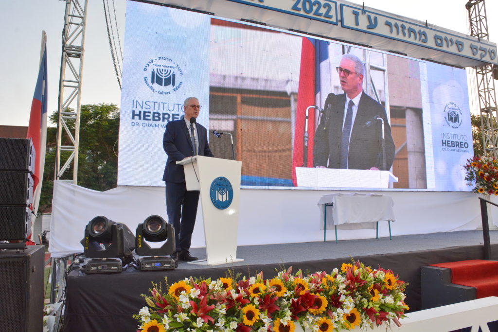 El acto contó con la presencia del Jefe de Misión Adjunto de la Embajada de Israel en Chile, David Anzarout, autoridades comunitarias, representantes del Vaad Hajinuj, directivos del colegio, morim, familias y estudiantes de IV medio.