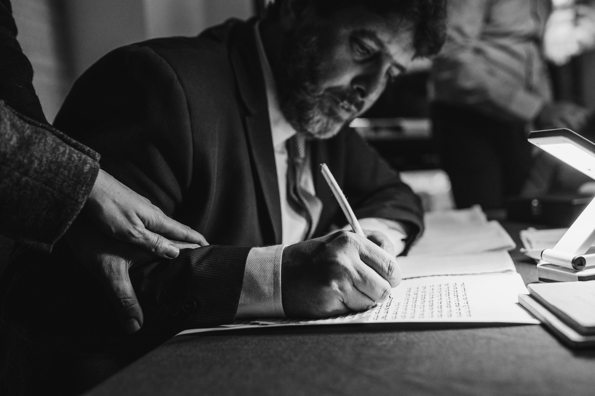 Es así como llegamos a nuestro sofer y Rab Sebastián Grimberg quien el día que inauguramos nuestra nueva sinagoga en la NBI, comenzó con el proceso de escritura.