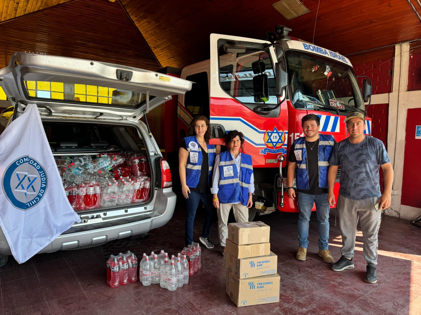 En medio de los incendios, Bnai Brith y la CJCh realizaron una donación de agua, bebidas isotónicas, gasa, guantes, suero y apósitos para los voluntarios de la Decimoquinta Compañía de Bomberos de Valparaíso, “Bomba Israel”, para que pudieran seguir con su maravillosa labor de salvar vidas.