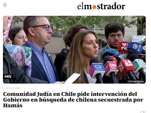 En un primer momento, la Comunidad Judía de Chile se coordinó con la Comunidad Chilena en Israel para que las vocerías las hicieran chilenos que estaban viviendo esta tragedia y la relataran directamente a los medios. Después, trabajamos incansablemente para mantener una activa vocería de nuestra presidenta en medios nacionales. Ariela Agosin ha dado decenas de entrevistas y ha sido citada por todos los medios en relación con los temas que más nos ocupan: la seguridad e integridad de los miembros de la comunidad judía de Chile, así como la de los chilenos que viven en Israel, especialmente aquellos que lloran la muerte de algún miembro de su familia o quienes deben lamentar el secuestro de Mia Schem, nieta de chileno y la chilena Loren Garcovich Montoya.