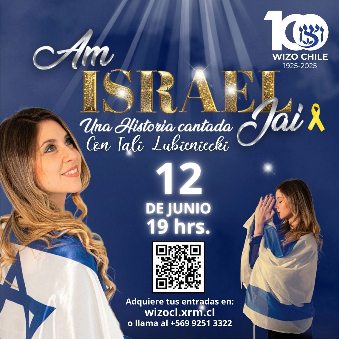 Tras cautivar a gran cantidad de público en ciudades como Buenos Aires, Punta del Este, San José de Costa Rica y y Miami, el conmovedor espectáculo “Am Israel Jai”, con la talentosa cantante Tali Lubieniecki, se prepara para una presentación muy especial en Santiago de Chile. La función tendrá lugar el próximo 12 de junio, en el marco de la conmemoración del Centenario de WIZO Chile.