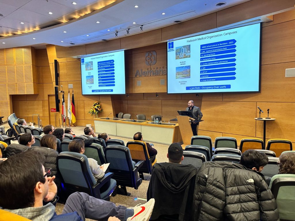 Durante el último año, hemos tenido el honor de recibir la visita de 10 delegaciones chilenas en Hadassah. Entre ellas, se destacan grupos como los directores de Meds, directores de Teletón Chile y Latinoamérica, así como también el Gobernador Orrego y el Gobernador de Concepción REGIONAL del Biobío, Rodrigo Díaz Worner, acompañado por su secretario de salud y otros funcionarios. También hemos recibido a Alejandro Jofre, Vicerrector de la Universidad de Chile, y una delegación de Diputados y Senadores, entre otros.