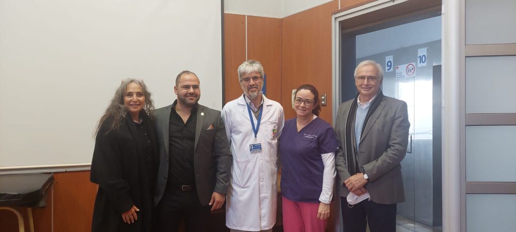 Desde el inicio de nuestras actividades en el país, hemos establecido un programa de colaboración conjunta con la Universidad de Chile. Este programa ha abarcado varias acciones significativas, incluyendo la visita del Vicerrector de la Universidad, el Dr. Alejandro Jofre, al hospital Hadassah. También, hemos tenido la oportunidad de contar con la participación de tres profesionales de la salud en una misión humanitaria en Polonia. Además, se han llevado a cabo reuniones con la Rectora de la Universidad para fortalecer nuestros lazos.