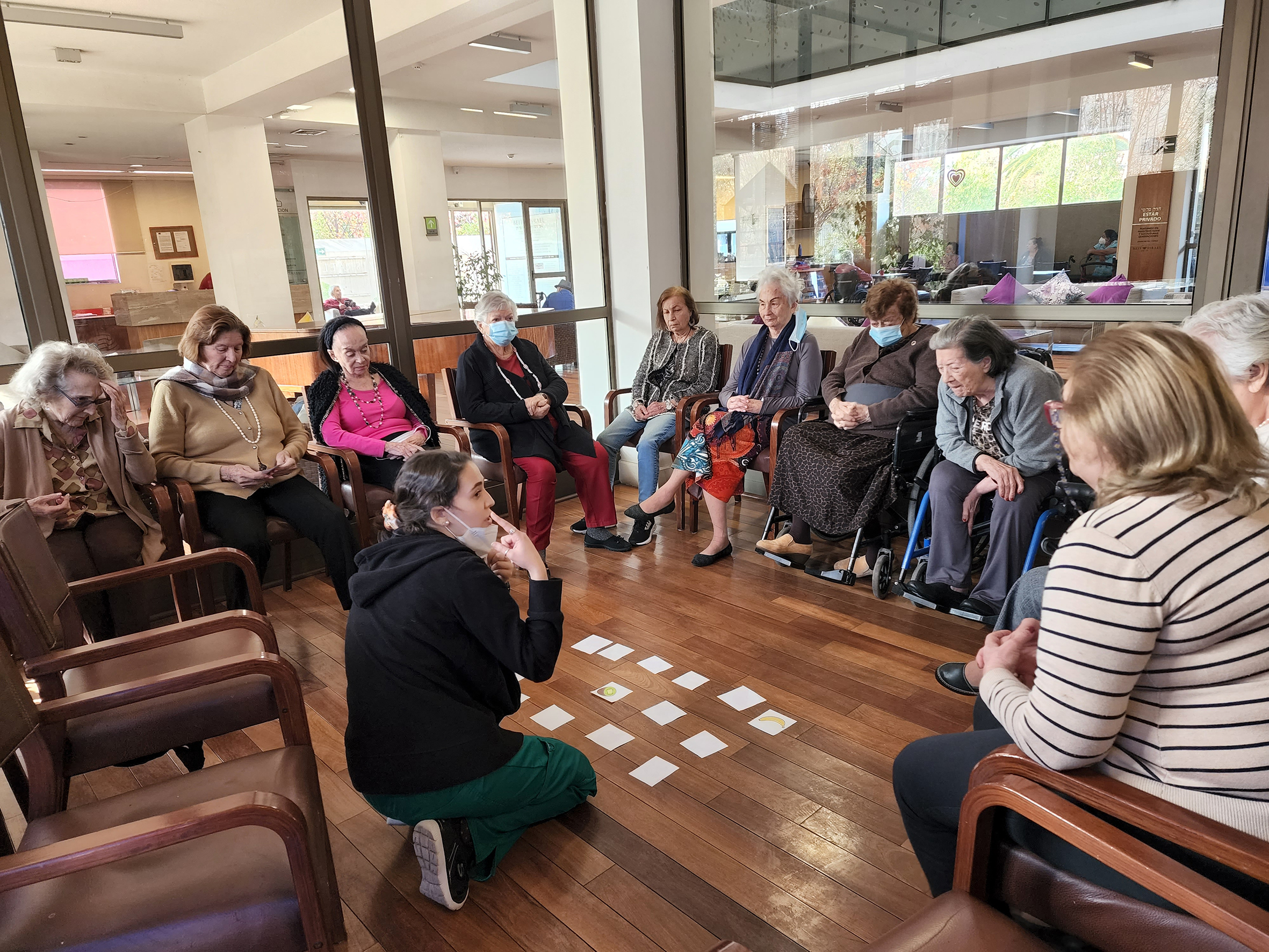 Ha sido una pasantía llena de aprendizajes tanto en lo personal como en lo profesional. La relación que se ha formado con el equipo y las personas mayores ha sido de gran apoyo para nuestro proceso, así como poder hacernos cargo de talleres y trabajar individualmente. Somos estudiantes de quinto año, ad portas de ser profesionales, y estamos poniendo en práctica lo aprendido en la Universidad por lo que la acogida y las ganas de participar de parte de los residentes es fundamental para poder hacerlo. Hacer el internado en un lugar en donde hay otras internas, enriquece nuestro proceso de aprendizaje, podemos compartir nuestra visión y a la vez complementarnos con sus miradas. Hacia los residentes vemos cómo les beneficia el compartir con gente joven, que trae nueva energía al lugar, motivándose a participar más de los talleres, y a su vez toman un rol de enseñanza desde la empatía para que podamos aprender de la mejor manera.