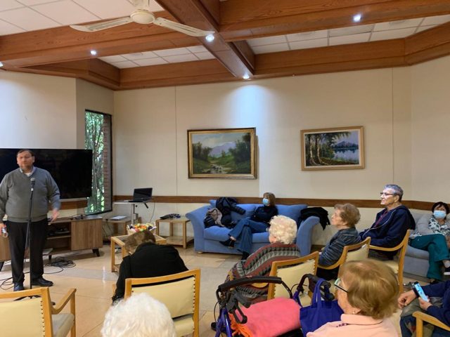 Una vez a la semana realizamos actividades con diferentes temas culturales, arte, música, actualidad, historia, estimulación cognitiva, sociabilización, entre otros. Recibimos visitas de diferentes profesionales, Rabinos, psicólogos, historiadores, profesores y diversos voluntarios quienes nos aportan con sus experiencias y sabiduría, motivando a nuestros residentes a estar en alerta y ellos participan con gran interés.