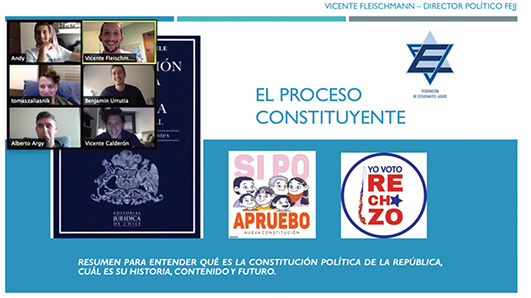 Hemos conversado desde si es realmente necesario cambiar la Constitución o si podrían hacerse los cambios vía leyes ordinarias, hasta si es democrática la paridad de género del eventual órgano constituyente. Las clases las realizan dos personas de la directiva, Alan Blanche y Vicente Fleischmann, que estudian Derecho en la Universidad de Chile y se manejan mucho más en el tema y aun así ellos tuvieron que estudiar y repasar la materia para asegurarnos que la información que estamos entregando sea la correcta. En casos de alta demanda, como lo fue con Bet-El -que solicitaron tres clases en una semana- contamos con el apoyo de otros jóvenes estudiantes de derecho, como Fernanda Gabor (PUC), de los cuales conocemos sus capacidades para mantener un buen estándar pedagógico.