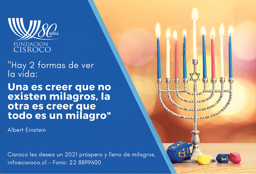 Les deseamos a todos un Jag Sameaj y feliz año, que el 2021 nos traiga alegrías, nos traiga vida, cariño, amistades y que podamos seguir siendo los mismos, pero mejores. Que la adversidad nos ayude a fortalecernos aún más.
