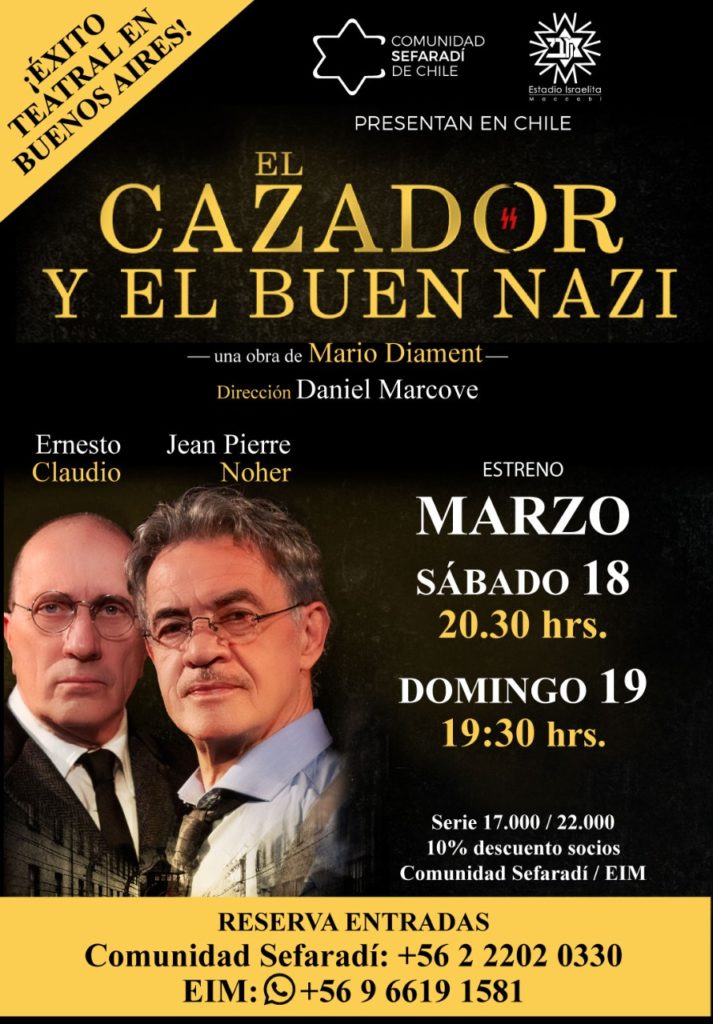 Ésta es la interrogante que estará presente en “El cazador y el buen nazi”, obra teatral que estrenará la Comunidad Sefaradí junto al EIM el próximo 18 y 19 de marzo con los reconocidos actores argentinos Jean Pierre Noher y Ernesto Claudio.