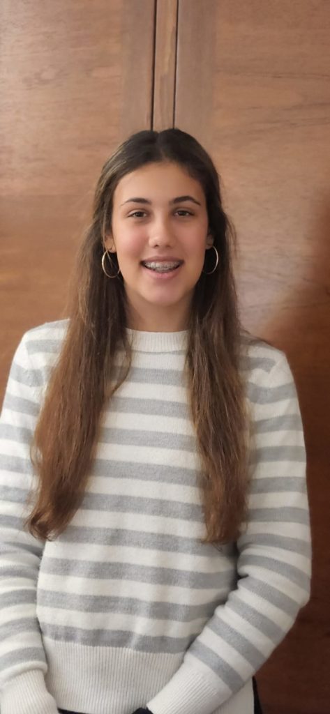 • Ariela Kirberg Friedlander, 16 años, cursa 11th grade, se destaca por su compromiso comunitario y por sus habilidades académicas. Es madrijá y parte de la Hanalá (Directiva) del Movimiento Juvenil Maguen Hador. En un futuro quiere estudiar un año en Israel y luego ingresar a la carrera de Medicina.