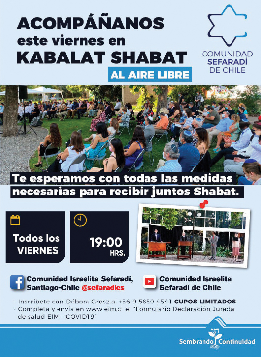 Desde hace algunas semanas comenzamos a recibir Kabalat Shabbat al aire libre, una linda instancia que nace bajo la necesidad de cumplir con los aforos permitidos tras la pandemia que vivimos desde el 2020 y hoy se vuelve una necesidad tras manifestarse las variantes actuales y los altos contagios.