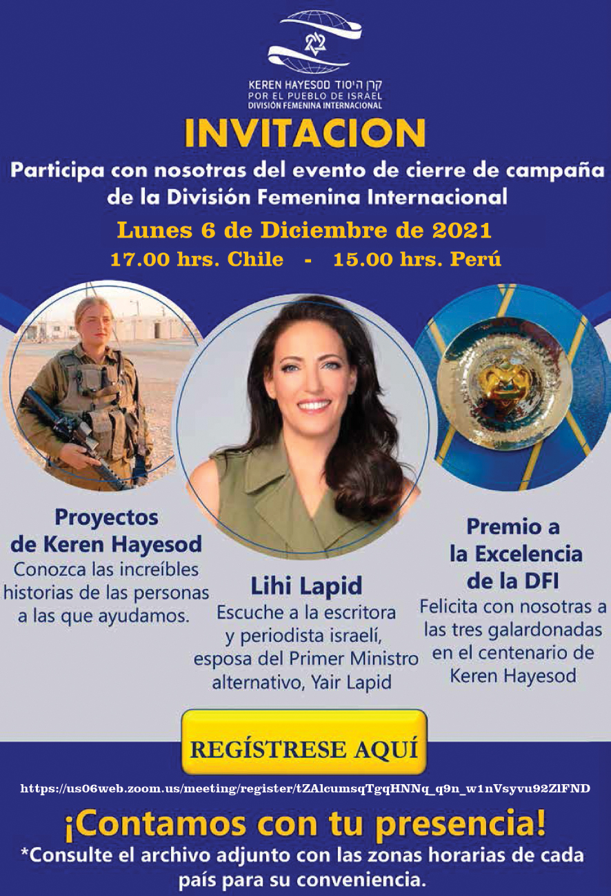 Invitamos asimismo a todas las personas de nuestra comunidad a sumarse a los esfuerzos de la Fundación Keren Hayesod Chile, contribuyendo con su aporte económico a estos u otros proyectos que Keren Hayesod desarrolla de manera permanente en beneficio de los miles de judíos del mundo que año a año deciden hacer de Israel su nuevo hogar.