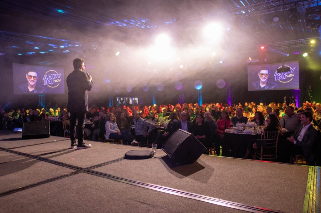 Durante la noche hubo diversas instancias para compartir, como el ya famoso Bingo o Kahoot donde el entusiasmo y la euforía llenaron de sonrisas los rostros de todos los asistentes. Así como el espectacular Show del humorista y cantante Andres Ini, quien viajo desde Buenos Aires para deleitarnos.