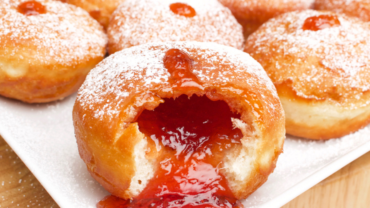 6- En una olla con abundante aceite caliente, freír las sufganiot por ambos lados, luego sacarlas y dejarlas en una fuente con papel absorbente. Hacer un corte en la mitad, sin llegar hasta el fוnal, dejando un trozo sin cortar. Abrir suavemente las  sufganiot para וntroducוr una boquilla y rellenar con  mermelada, manjar, crema de avellanas ס cualquוer relleno que desee.