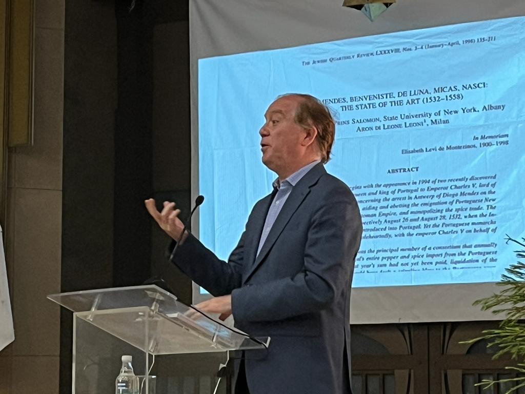 Pie de Foto: El jueves 30 de Marzo en el aniversario 531 de la Firma del Edicto de Granada organizado por la Comunidad Sefaradí de Chile, el Dr. Ignacio Chuecas mostró cartas inéditas de la realeza europea sobre Doña Gracia Nasi escritas durante la época moderna.