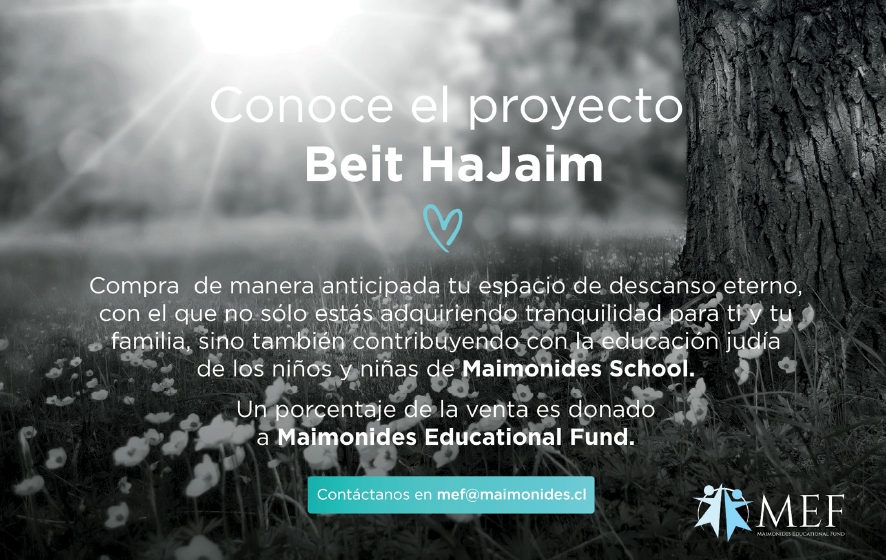 La invitación es a contactarse con MEF (mef@maimonides.cl) para obtener más detalles, y así conocer más sobre este proyecto que logra empalmar el descanso eterno con la educación de nuestras futuras generaciones.