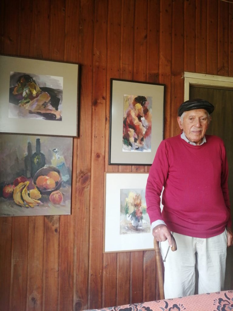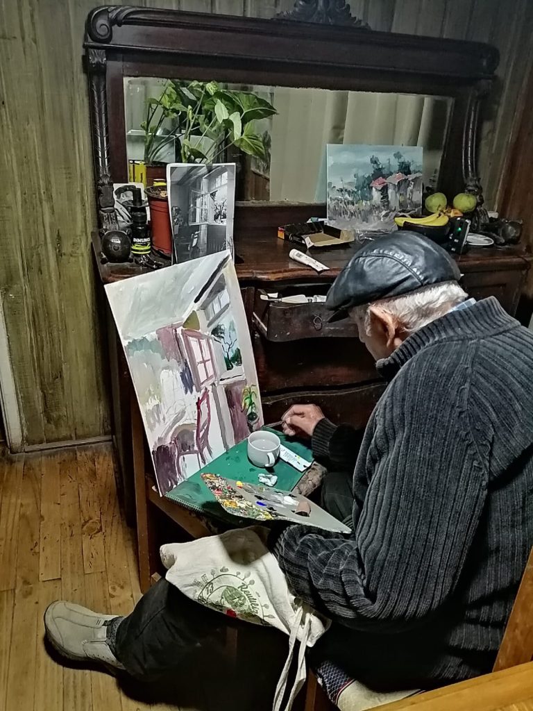 A sus 99 años, sigue cada día pintando, ilustrando y haciendo caricaturas en su casa en Quinteros.