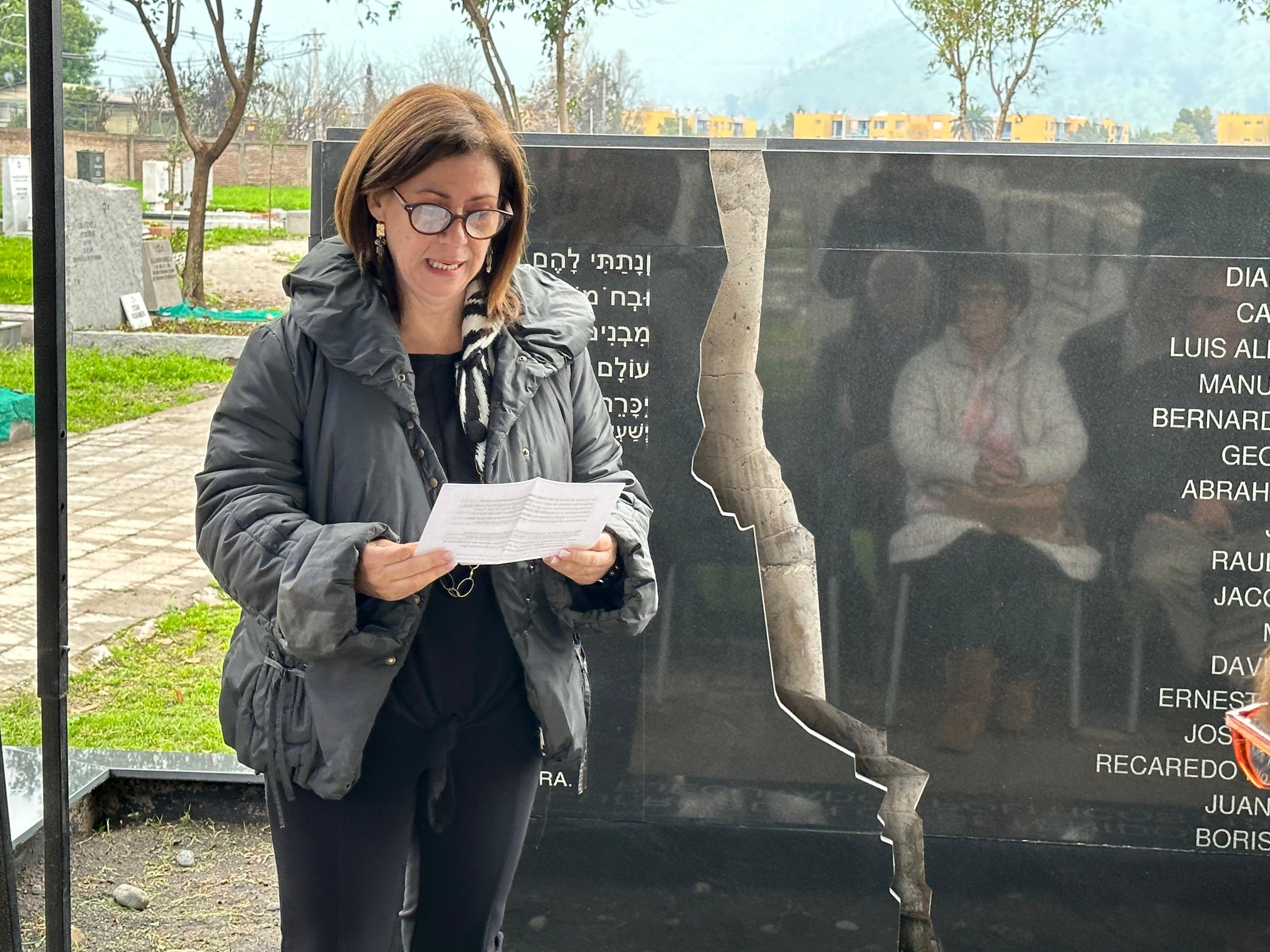 En el Cementerio Israelita de Recoleta, y con la presencia de representantes de la Comunidad Judía de Chile, el Rabino Eduardo Waingortin, los Diputados Carmen Hertz y Tomás Hirsch, así como miembros del Centro Progresista Judío y familiares de los Detenidos Desaparecidos de nuestra comunidad, B’nai B’rith se hizo presente a través de sentidas palabras de su Presidenta QH Guila Bergstein en la Tefilá frente al Memorial de recordación de las víctimas.