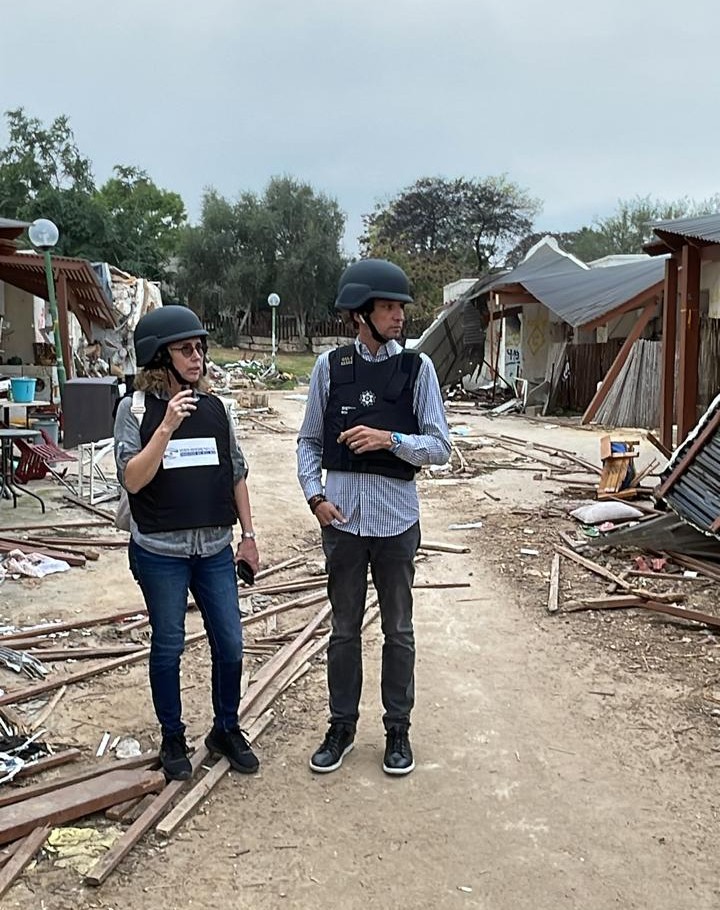 Escuela en el norte de Israel, cerca de Kiryat Shemona apoyada por Keren Hayesod (actualmente todos evacuados) | Karen Pupkin y Jaco Leopold en misión de solidaridad en Kfar Aza diciembre de 2023, zona fronteriza de Gaza. |