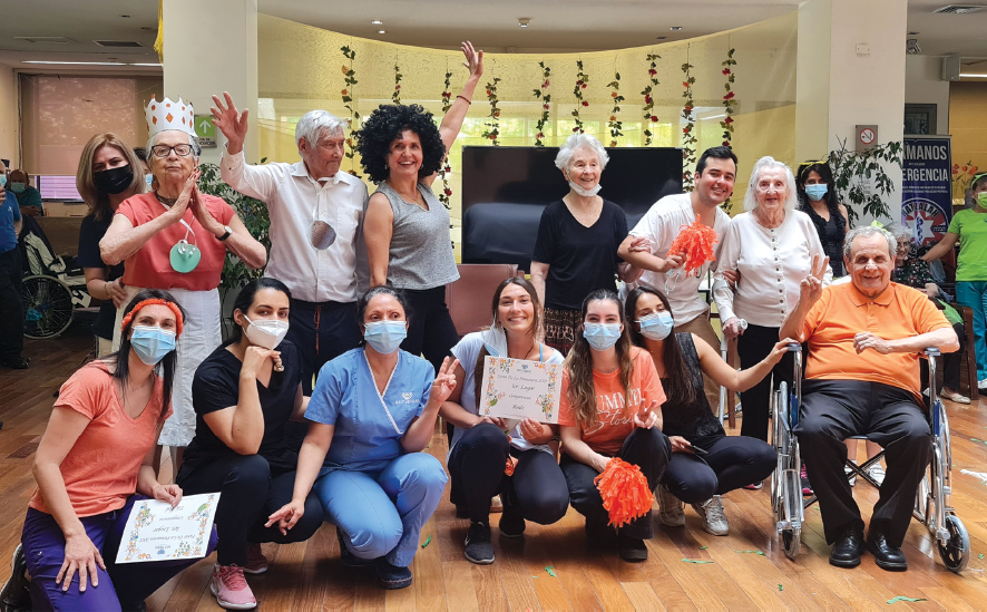 Desde hace 10 años que celebramos el mes del adulto mayor en nuestra residencia. El año pasado, debido a la pandemia,  no se pudo festejar, por lo que este año, buscamos la fórmula para realizar durante todo el mes, actividades seguras y entretenidas: estuvimos de paseo en diferentes parques, fuimos a conocer el santuario de la virgen del Carmen en lo Barnechea, dado que somo una residencia multicultural, estuvimos en el Parque Bicentenario, hicimos una caminata de 1k por el Parque Araucano, participamos de un bazar de emprendedoras en Ñuñoa, celebramos con música en vivo en el jardín de nuestra casa, realizamos una once entretenida con bingo y por último, para cerrar el mes, hicimos la Gran Fiesta de la Primavera, donde tanto los colaboradores como residentes, nos divertimos y reímos con las diferentes actividades; con mucho humor, música, cariño y creatividad.