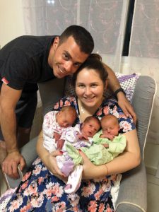 Ella y su marido, Jonathan Manopla, fueron bendecidos por Di-s, con el milagro de procrear trillizas sanas de manera natural y totalmente inesperada.