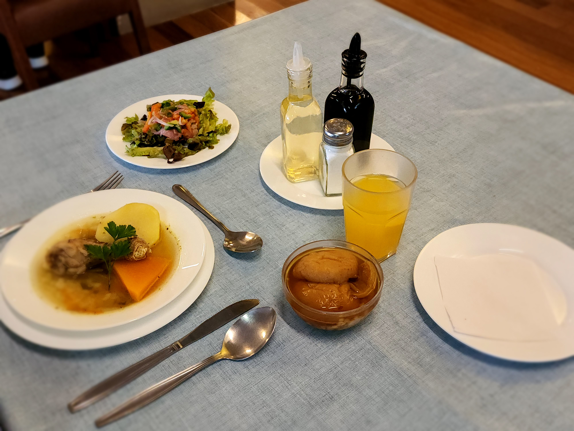 Tanto para la cocina como para todos nuestros colaboradores la pandemia ha generado un desafío que hemos logrado superar con creces, ya que nuestros residentes han seguido recibiendo sus comidas como acostumbran, a pesar de que hemos tenido que recurrir a entregarles los alimentos en loza desechable.