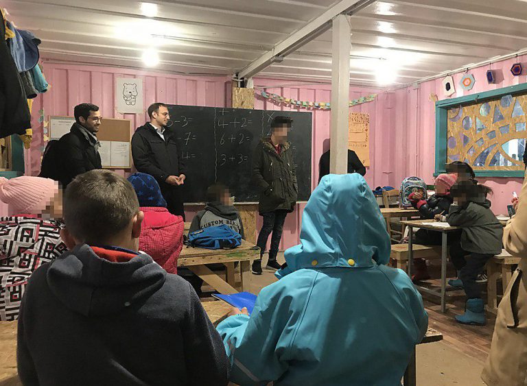 En Lesbos, los trabajadores humanitarios israelíes establecieron la Escuela de la Paz, que tenía cuatro clases en diferentes idiomas: árabe, Dari (un dialecto del idioma persa común en Afganistán), kurdo y francés, en beneficio de los refugiados de Ghana.