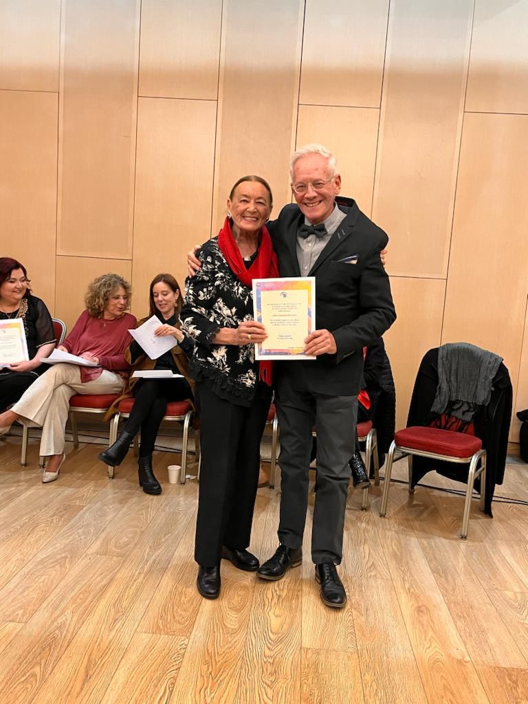 Nissim Sharim Paz (ZL), actor y abogado, fue representado por su hija Paula, quien compartió sobre la vida y carrera artística de su padre. A través de su relato, los presentes pudieron conocer los pormenores de la formación del Teatro Ictus y de cómo sigue vigente hasta hoy. Nissim: “Digámosle al tiempo que su esfuerzo por borrar las huellas de los zapatos que han pisado este escenario es inútil”.