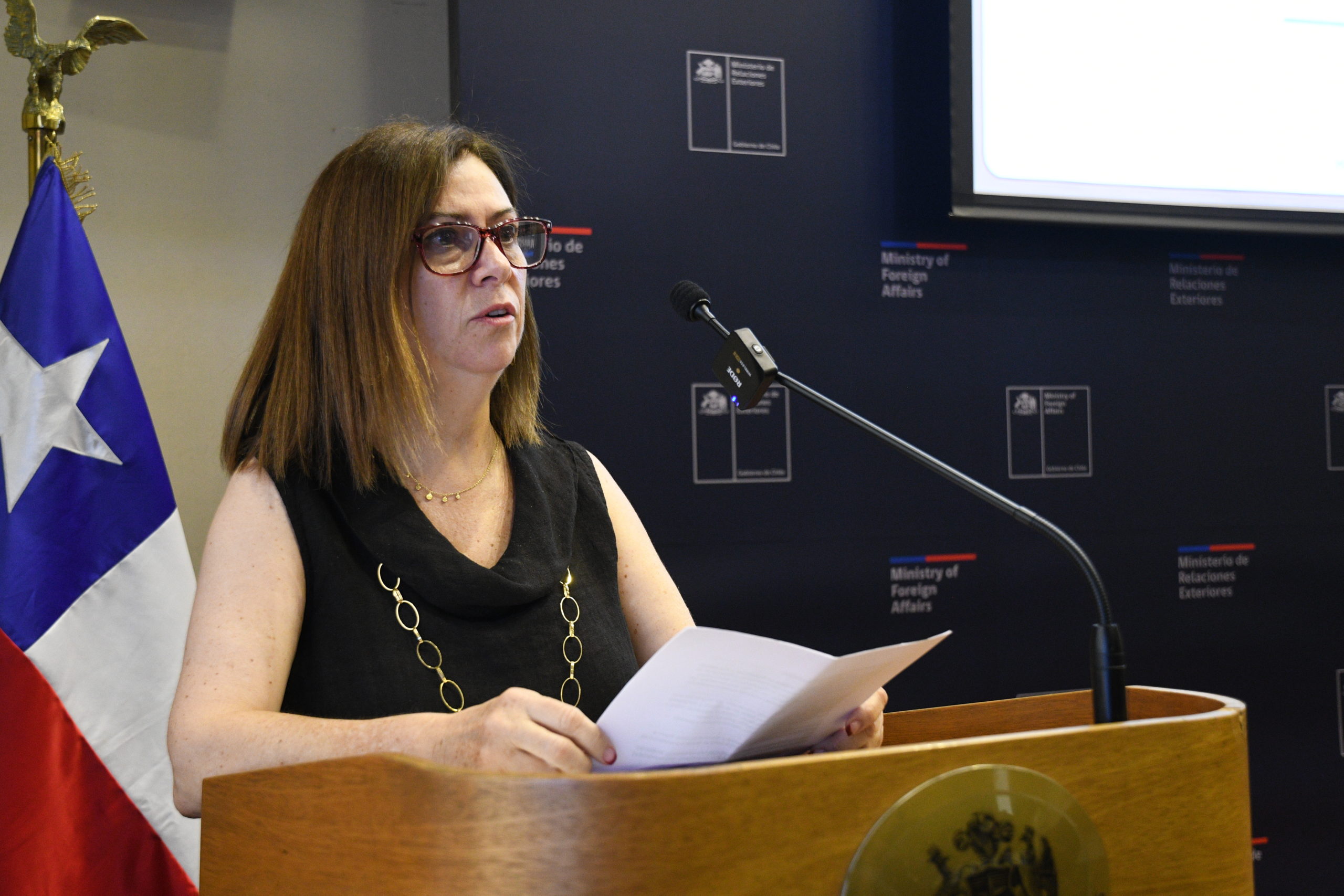 La ministra de RR.EE., Antonia Urrejola también hizo uso de la palabra. Relató su experiencia en distintos museos del Holocausto del mundo, en los que la foto de una niña enferma, asesinada por los nazis, la marcó profundamente,