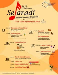 Entre el 14 y 18 de noviembre, Comunidad Sefaradí de Chile invita a los miembros de todo el Ishuv a la 38 semana sefaradí la cual revivirá nuestro acervo cultural a través de distintas actividades culturales y de culto. Te invitamos a participar con nosotros desde el primer día.