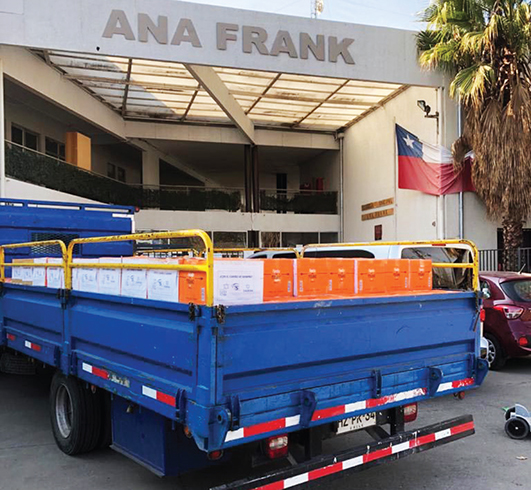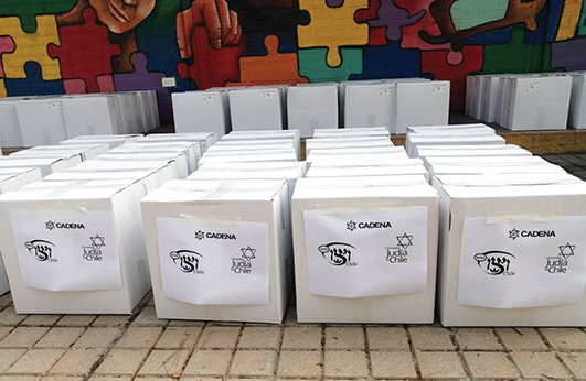 a Gerardo Gorodischer, presidente de la CJCh, por su apoyo y presencia en la entrega de cajas con alimentos a las escuelas, como asimismo a los voluntarios de CADENA, por el armado de 700 cajas y la colaboración de la logística en la entrega a cada establecimiento.