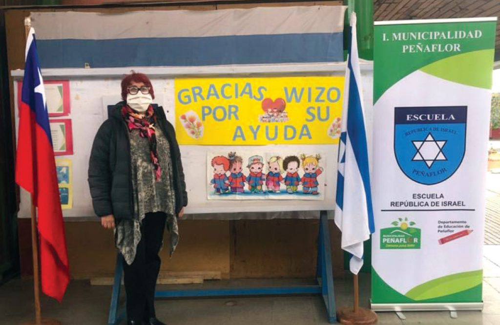 Yael Hasson, presidenta de WIZO, Eugenia Camhi, directora ejecutiva de WIZO CEFI, junto a Daniela Goren y Nicole Rezepka, hicieron entrega de más de 750 cajas de alimentos en la escuela “República de Israel” de Santiago.