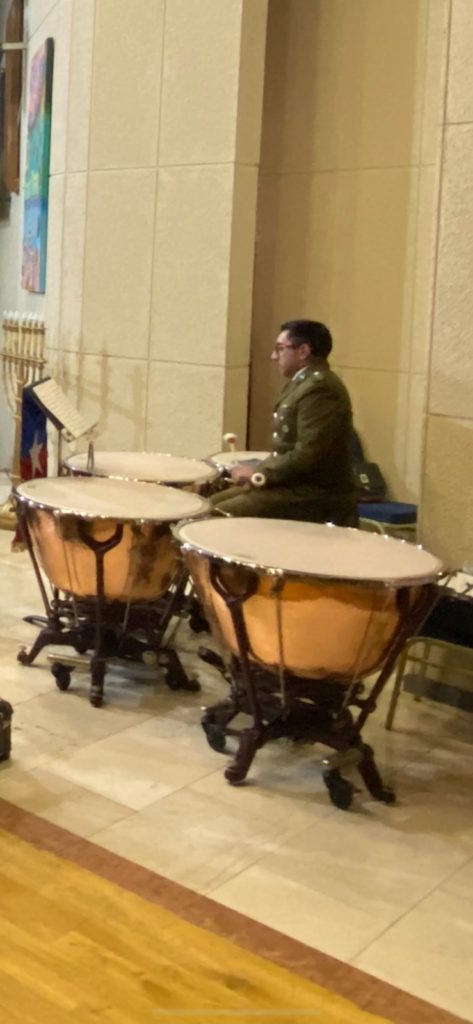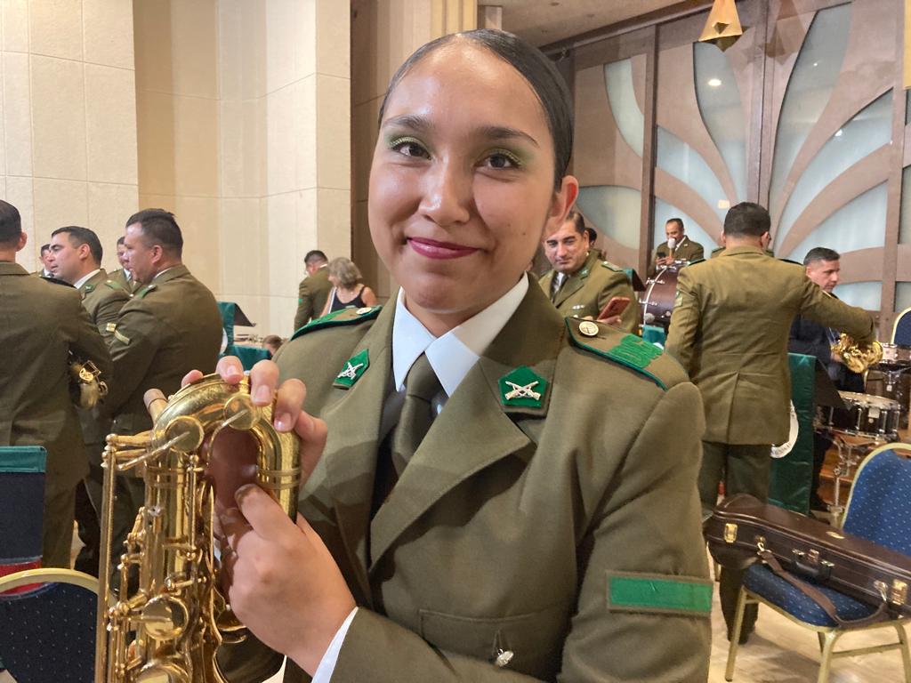 “Nuestra conexión con la gente es a través de la música, somos el brazo cultural de Carabineros de Chile y nos identificamos como carabineros músicos. Llegamos a distintas comunidades recorriendo el país de norte a sur difundiendo todo tipo de música: popular, contemporánea, clásica…”, cuenta el director actual de la banda quien lleva 25 años de servicio interpretando música junto al clarinete.