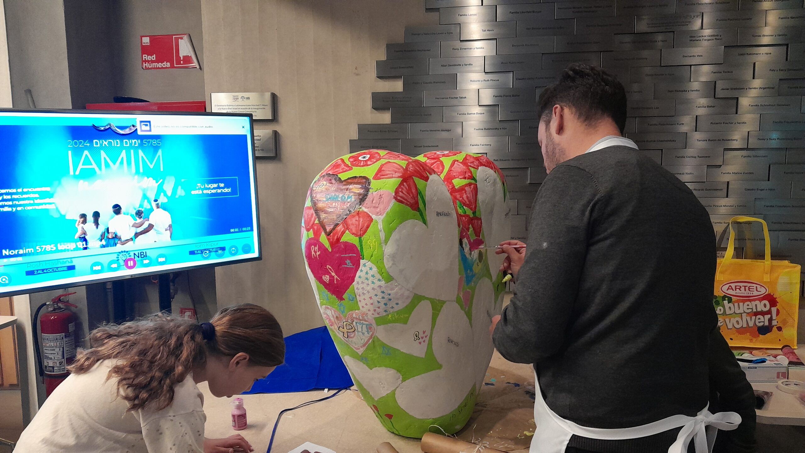 De ahí, nace la idea de crear todos juntos, algo que nos represente y que de alguna forma el sentimiento de unión como pueblo, de participar en comunidad, desde los más chicos de Gan Babait, Tikva, voluntarios, socios, directores, staff y Rabino, algo que perdure en el tiempo y que nos recuerde que fuimos testigos de ese día.