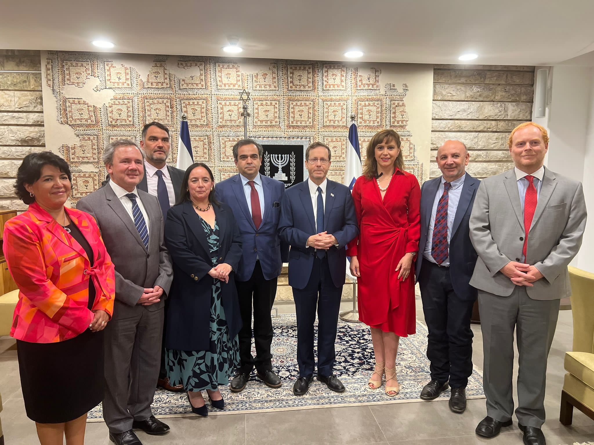 Un hito importante del viaje, y de la historia de la Comunidad Judía de Chile, fue la reunión con el presidente de Israel, Isaac Herzog, quien, de manera excepcional, recibió a la comitiva un día antes de las elecciones.