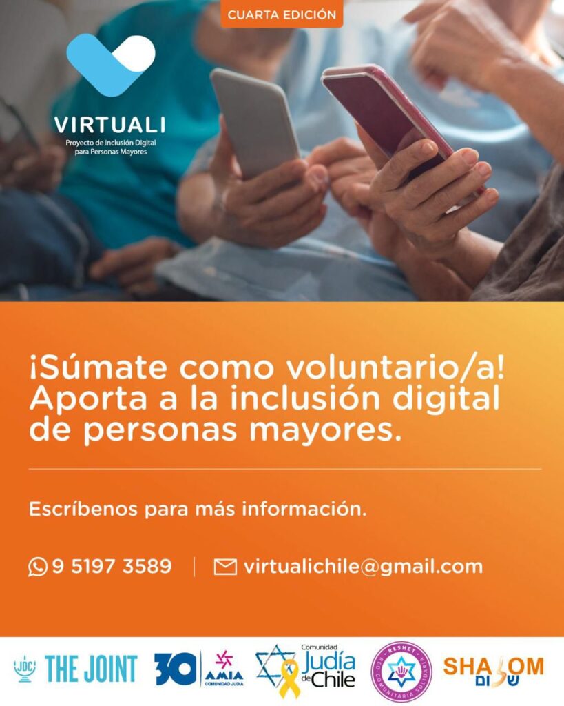 Actualmente, contamos con un equipo comprometido de aproximadamente 30 voluntarios, quienes dedicarán su tiempo y conocimiento para llevar este proyecto adelante. Durante el mes de agosto, Virtuali dio inicio en cinco grupos en diversas instituciones de la comunidad, como el hogar CISROCO, Beit Israel, Comunidad NBI, y el Mercaz, y próximamente estaremos trabajando también en el Estadio Israelita y otros espacios. Cada voluntario tiene a su cargo un grupo de entre 5 y 7 participantes, y las sesiones se imparten de manera semanal, en encuentros de una hora.